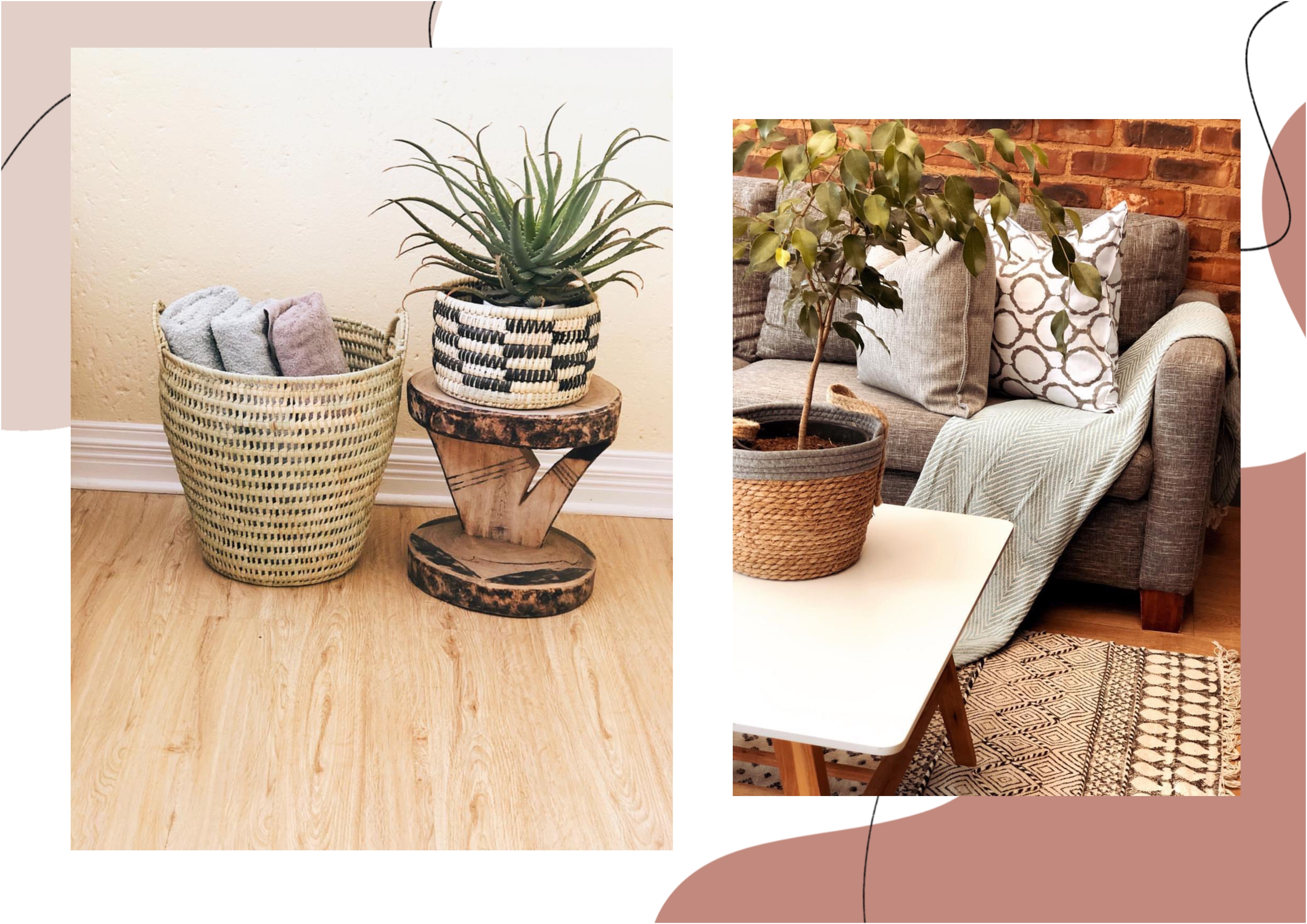Baskets and plants, it’s amazing at how these two pieces can change and fit in with any designs. We believe plants bring life and happiness in a space. Styling with plants compliments any décor style in any given space. Baskets add texture to a room and also hide a multitude of sins, a very versatile piece.